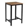 The square EKO complete bar height table is a modern and durable choice for any indoor or outdoor hospitality space. Its Aged Golden Oak EKO tabletop offers the aesthetic of wood but is crafted from 100% recycled materials, providing a maintenance-free, weather, fade, and UV-resistant surface that never needs painting. Paired with the robust, black powder-coated steel Paris Table Base featuring adjustable feet for exceptional stability, this table is built to last.