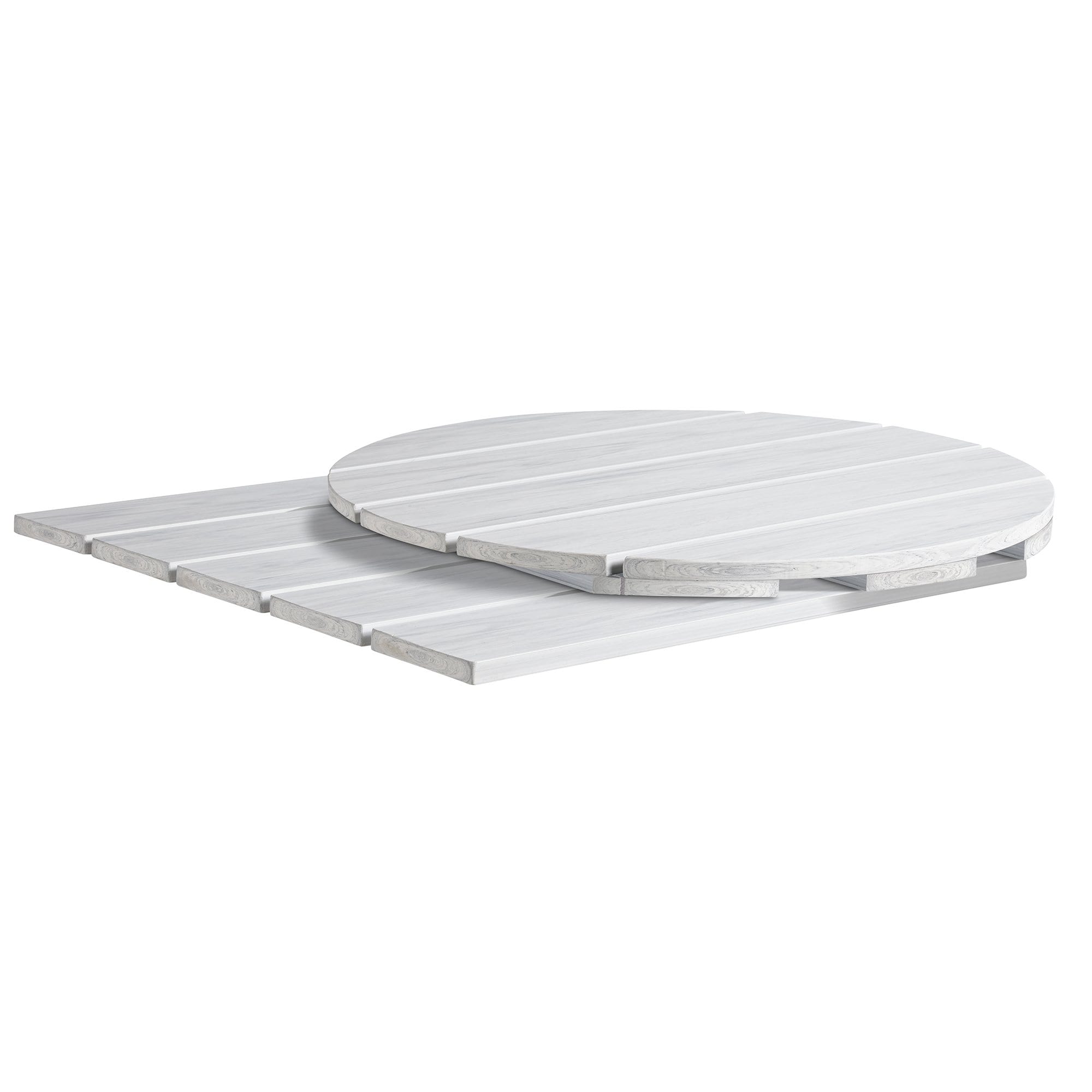 20mm slatted table top which looks exactly like wood yet is made from 100% recycled material. Maintenance free and is extremely durable.