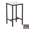 The bar height table features an Extrema Carrara Marble top that's built to last, withstanding weather, impacts, abrasions, heat, and stains with virtually no maintenance. It also resists UV fading. The Paris Table Base, made from durable black powder-coated steel with adjustable feet for stability, ensures this stylish commercial table is a low-maintenance, long-lasting choice for any indoor or outdoor hospitality setting.